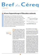 L'apprentissage au sein de l'Éducation nationale évolue discrètement depuis 40 ans. Au début des années 90, l'offre s'organise et s'institutionnalise ; pour autant, les effectifs restent en deçà des ambitions. Règles gestionnaires inadaptées et déficit de légitimité chronique au sein du monde de l'éducation sont en partie en cause. La volonté politique actuelle de lever ces freins passe par l'encouragement à la mixité des parcours de formation, ainsi que par le renforcement des partenariats avec les acteurs du monde économique.