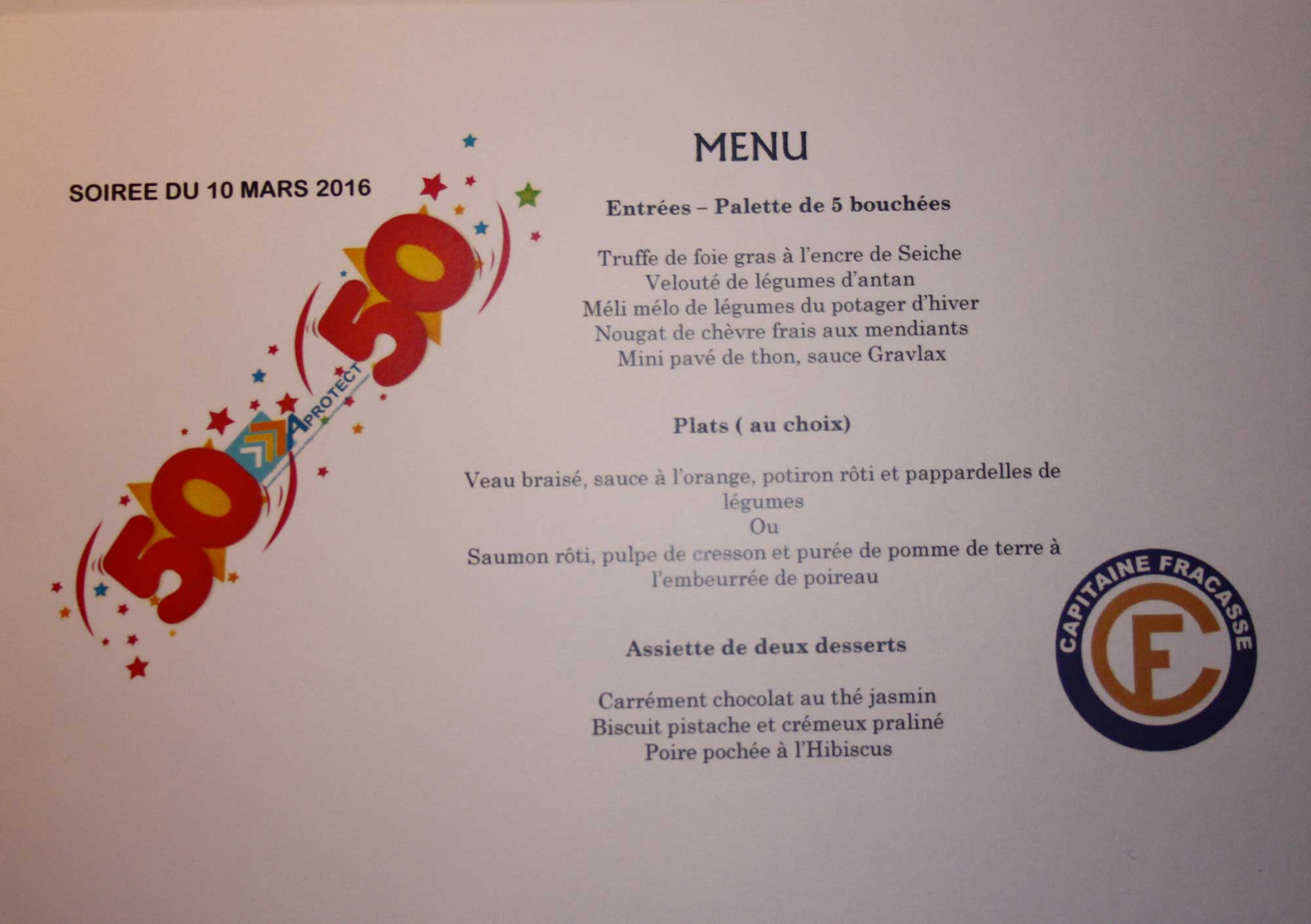La soirée du cinquantenaire s’est tenue le jeudi 10 mars, à bord du navire Capitaine Fracasse navigant sur la Seine (soirée prévue en novembre 2015 mais reportée pour cause d’attentats). Ce fut une très belle soirée.